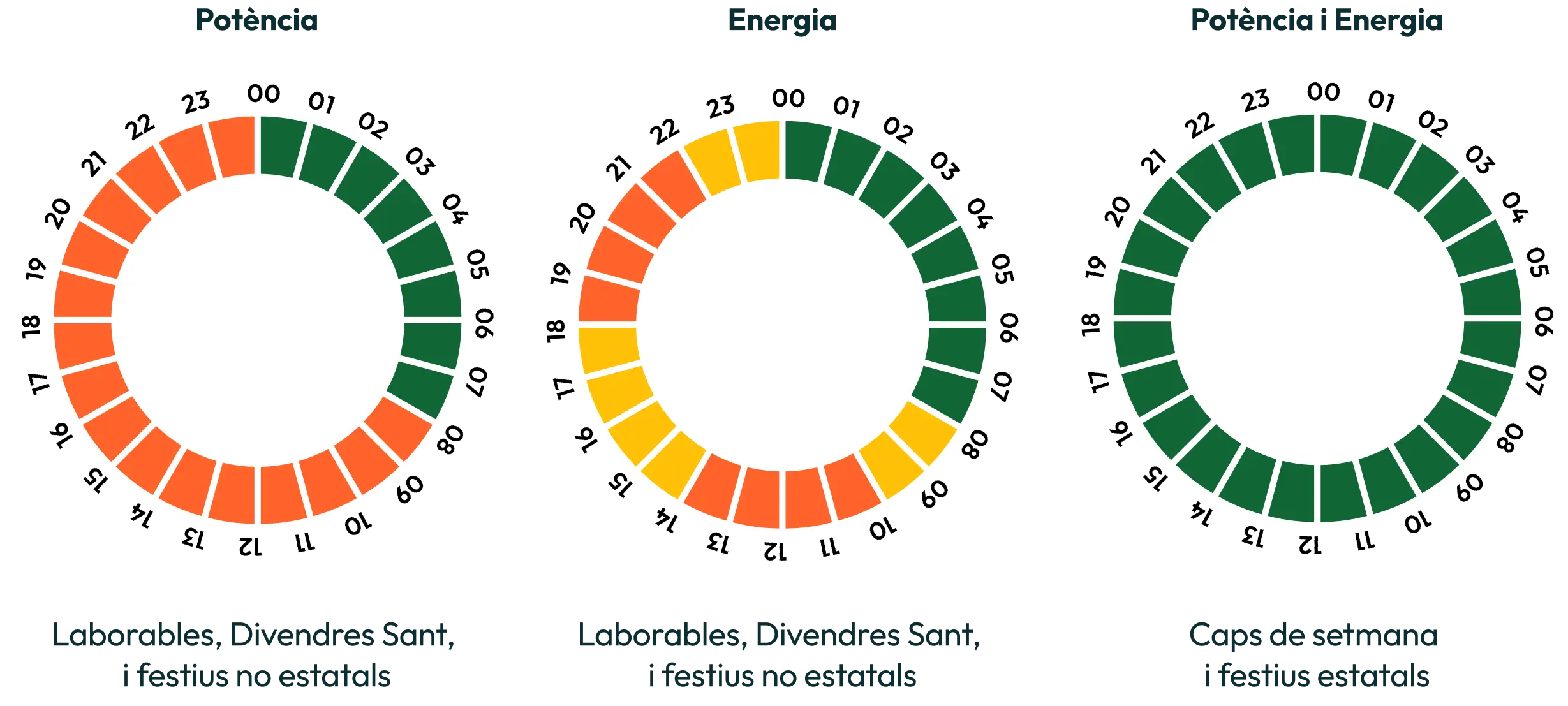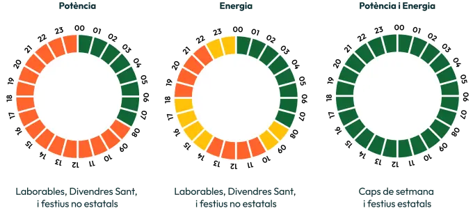 Es divideix el dia en franges horàries amb preus diferents per a cada període horari. Aquests horaris són sempre els mateixos, la qual cosa permet planificar quan és millor utilitzar els electrodomèstics o carregar dispositius per estalviar en la factura.